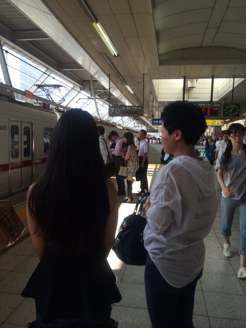 大陸からのお客さんが、おしくらまんじゅーな満員電車をおかしそうに写真に収めていた。親近感。